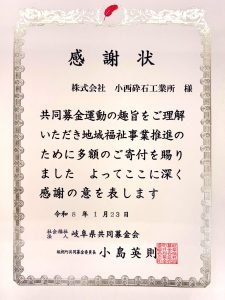 お知らせ Notification お知らせ一覧 岐阜県共同募金会より感謝状を贈られました 2026年01月27日 共同募金運動に対する活動に対し、岐阜県共同募金会より感謝状を贈られました。 << 前の「社会福祉法人坂祝町社会福祉協議会より感謝状が贈られました」へ